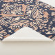 Seamless symmetrical pattern in the Damask style. Jumping hares,an ornament of plants in beige shades on a dark blue background.
