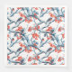 Seamless titmouse birds, winter snow branches, rowan, rose hips, pattern