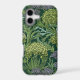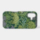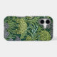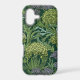 Seamless William Morris style wallpaper pattern featuring dense green foliage and large, rounded flowers in shades of lime green, off-white, and muted lavender against a dark emerald background.
