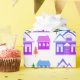 Seamless winter Merry Christmas landscape violet pink houses green trees white background
