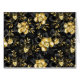 Seamless pattern with black and gold blooming orchids, richly decorated with black eucalyptus twigs and delicate jewellery pistachio twigs on black background. Golden jewellery Orchid.