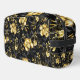 Seamless pattern with black and gold blooming orchids, richly decorated with black eucalyptus twigs and delicate jewellery pistachio twigs on black background. Golden jewellery Orchid.