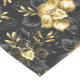 Seamless pattern with black and gold blooming orchids, richly decorated with black eucalyptus twigs and delicate jewellery pistachio twigs on black background. Golden jewellery Orchid.