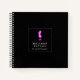 Elegant chic personalised spiral notebook for your seamstresses, fashion designers, tailors, alterations businesses, or costume designers. Featuring a mannequin silhouette in bright fluorescent pink. Personalise with your name / company name and slogan or your choice of custom text.