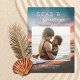These beautiful holiday photo cards feature a beach sunset painting in the background and a rectangular (almost square) photo template. Stylish, modern typography reads, "Seas & Greetings." Easy to personalize. The back is dark teal blue - Leave as is or customize the color, if desired. Add more photos to the back or choose white so as to easily be able to write messages to family and friends!