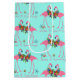 Seas and Greetings Flamingos Turquoise Christmas Medium Gift Bag