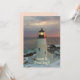 Seas and Greetings Maine Lighthouse Flat Card. The greeting is coordinated with the colour of the headlight. Use for your annual holiday cards or party invitation.