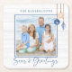Seas and Greetings Nautical Seashell Wood Photo Coasters featuring ocean navy blue and sandy tan shell ornaments hanging from sailing jute rope on coastal shiplap wood with elegant typography. Add your photo and name for a fun nautical holiday coaster or gift. Please contact us at cedarandstring@gmail.com if you need assistance with the design or matching products.