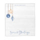 Seas and Greetings Seashell Ornament on Coastal Wood Holiday Christmas notepad featuring ocean navy blue and sandy tan shell ornaments hanging from sailing jute rope on coastal shiplap wood with elegant typography. Add your name for a fun nautical holiday gift. Please contact us at cedarandstring@gmail.com if you need assistance with the design or matching products.