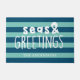 Seas and Greetings door mat in a light and dark aqua stripe.