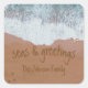 Seas & Greetings (Any Words) Beach Sand Writing Square Sticker