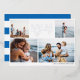 Capture a cool nautical casual and coastal vibe this holiday sea-son with our coastal seaside-inspired holiday foil card. Design features a four-photo layout to display your beautiful family photos and vacation photos. "Seas and Greetings" is designed in a stylish coastal blue typography design. The reverse side features a bold coastal blue nautical stripe design with a white anchor icon.