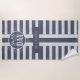 Fun play on Seize the Day with a coastal feel of "Seas the Day". No one will steel your beach towel when it has your name on it! Great denim blue and white washed bold stripes in horizontal and vertical with a place for you name, nickname or personal message.