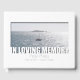 Simple, modern and elegant customisable Celebration of Life guest book with a simple white frame + In Loving Memory (drop shadow - not customisable) and seascape. You can easily change image and name + dates (colour, font, size and position) and add text in back by clicking the customise button. Matching Celebration of Life invitation.