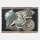 A quality printed throw has its advantages. This is a much finer weave throw than its loopier cousins, and though lighter, it is worth the investment for custom room accessorizing. The back is much prettier than the typical brown, and the fringe on the long sides very vivid, the selvage nicely done. Before photographing, I washed the throw in cold water, delicate, with a thicker woven throw the same size. On tumble dry low, this throw was dry in half the time as the other. This is a very practical quality if you use throws for furniture covers or to wrap up in frequently. The sleekness of the fabric makes it a great layer for accenting or protecting without the feeling of sitting on too much stuff. Perfect for napping or when you feel a light chill coming on. The color printing is beautiful and on this fabric, matched the design and color of my Photoshop image. This is an advantage for blending room fabrics and colors. The fringe on the short sides prints the colors from the design image and therefore varies from the side fringe. I streaked a white fractal line through the plaid pattern to give the illusion of weaving. This printed as crisp as an illusory thread, and put some white in the short side fringe, showing another advantage of print vs loomed- for artistic purposes, line lines, detail, and color integrity can be planned and preserved. My loomed throws have color limitations and more of a needlepoint texture. Print throws reproduce an exact image. The throw felt a little stiff straight out of the package, but this went away in the first delicate wash. Of course I searched the wash water for ink or bleeding and there was none.