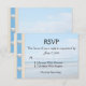 Soft Blue Seashell Beach Wedding RSVP. Great wedding style RSVP for beach or destination weddings. Soft blue tinted seashell with a blue lacy ribbon. A sandy beach and picture perfect waves background for your personalised wedding. Matching Invitations, Thank You's, and additional wedding products available.