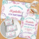 Let's shelle-brate! Girly seashell birthday with shells in shimmering purple, vibrant teal and pearly pink. Photo template via Pixabay licensed under CC0 and must be replaced with your own photo.