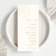 Set the tone for your reception with this ivory and gold seashell beach wedding menu, featuring elegant coastal illustrations and a refined neutral palette. Inspired by timeless seaside charm, the design pairs soft ivory tones with subtle gold accents for a look that feels both relaxed and sophisticated. Perfect for beach, coastal, and destination weddings, this menu adds a graceful finishing touch to a thoughtfully styled table setting.