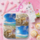Bright colourful seashells square paper plates. Available in different shapes and napkins and coasters.