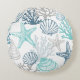 Seashell Starfish Pattern Blue And Teal Round Cushion