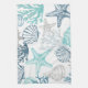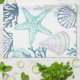 Seashell Starfish Pattern Blue And Teal Tea Towel