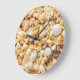 Seashell textured summer beach background. large clock