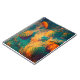 Artistic image of some scalloped seashells on a sandy beach. The seashells and sand are coloured a vibrant teal green and rusty orange. Lovely textures and lighting. A delightfully soft and glowing image. Great for beach lovers.
