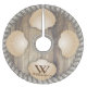 Get an elegant and rustic beach vibe this holiday with this amazing Christmas tree skirt featuring tan scalloped shells, ship lap inspired wooden planks background, and light grey and white rope accents.