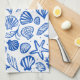 Seashells Blue & White Pattern Beach Shells Chic Tea Towel