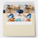 Make a splash with these envelopes which are perfect for pairing with invitations to your under the sea themed quinceanera or beach themed weddings and parties. These sand coloured envelopes have a seashell illustration on the front, your name and address in elegant brown lettering on the back flap and a bold and vibrant pattern of seashells on the inside.