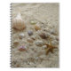 A variety of colourful little seashells are nestled in the beach sand on this notebook. It is perfect for jotting down notes, writing journal, planner, diary, or school notebook.