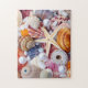 Beautiful and colourful seashells on the beach challenging puzzle.