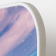 Beautiful romantic seascape with gently pink sandy shells on the beach with monogram name design. The wave gently washes the shore, pink clouds are floating in the blue sky. The atmosphere of paradise and serenity.