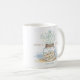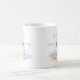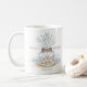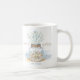 Coastal theme Christmas mug features a watercolor abstract beach with a rustic jar decorated with nautical rope, seashells, sea glass, coral and string lights. The lower line of text can be personalised (such as with a name or brief caption or greeting).