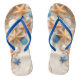 Seashells, starfish, and pebbles on a sandy beach jandals