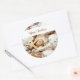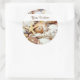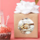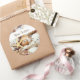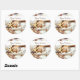 The sticker is made on wonderful paper and had no problem sticking to the bag that I purchased to put it on. I wanted to find a design that would be cute for the bride and groom and this one fit the bill as it has cute "bees" buzzing around and the wedding was taking place in a town called "Bee Cave". The packaging was great and protected the stickers. The website is easy to navigate and there are so many color choices. I had no problem finding a color that the bride was using on everything else selected. The design was adorable and there were many to choose from. You can make the figure as larger or smaller and you can place the photo and writting whereever you want to in the sticker. The printing is fabulous..better than expected.