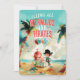 Ahoy there and dive into the fun with our "Seaside Adventure Mermaids & Pirates Birthday Invitation!" The front invites you to a first birthday party, featuring a joyful scene with a mermaid and a pirate sharing a birthday cake, set against a backdrop of tropical palms and azure seas. Splashes of confetti, balloons, and the golden sun add to the celebratory mood. The back summons all little mermaids and pirates to join the adventure with playful, buoyant text set on a sun-kissed oceanic horizon. This invitation is a treasure map to a day filled with merriment, perfect for your little one's special day.