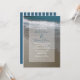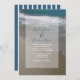 This beach design features a sandy coastline. The picturesque setting combines blue ocean, white crashing waves and golden sand. The wording is elegantly framed with a simple white opaque border background. The reverse of the design uses the same colour as the bride's and groom's name with white nautical vertical lines. This is the perfect beach destination wedding design ideal for a summer or seaside wedding. Elegant and romantic beach wedding invitation design with modern elements. Matching wedding stationery items and other wedding invite formats are also available.