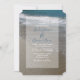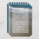 This beach design features a sandy coastline. The picturesque setting combines blue ocean, white crashing waves and golden sand. The wording is elegantly framed with a simple white opaque border background. The reverse of the design uses the same colour as the bride's and groom's name with white nautical vertical lines. This is the perfect beach destination wedding design ideal for a summer or seaside wedding. Elegant and romantic beach wedding invitation design with modern elements. Matching wedding stationery items and other wedding invite formats are also available.