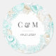 seaside coastal elegant wedding monogram classic round sticker