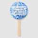 Starfish and blue hydrangea flower, heart-shaped wedding fan. One side of the fan holds this saying, “To have and to hold from this day forward”, and the other side has templates for names of the couple and date of event.