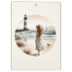A graceful young woman in a flowing white dress wanders along the sandy shore, her sun hat tilted against the breeze as she gazes towards a striped lighthouse standing strong against the waves. Gentle grasses frame the foreground while seabirds and a sailboat drift across the horizon, adding a sense of calm movement to the coastal landscape. The soft watercolor style blends romance and serenity, creating a timeless cottagecore-inspired seaside scene that feels both nostalgic and dreamlike. AI generated artwork.