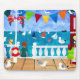 A mousepad with a handpainted paper collage design of the seaside. See also matching greeting cards, posters/prints, gifts and apparel.
