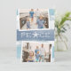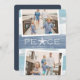 Chic coastal style holiday card adds beachy flair to your Christmas greetings. Perfect for sharing vacation photos, or for families who live in coastal, tropical, warm weather or island locales, this lighthearted design features two favourite photos on a sheer blue watercolor striped background with "peace" in the centre. A starfish takes the place of the letter "A" for a cute coastal touch. Add your custom holiday message and your names or family name, along with an additional photo and custom message on the back.
