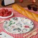 The full-pattern layout is scaled to complement the shape of the plate, allowing the artwork to flow naturally without feeling crowded. Perfect for layering into place settings or styling a full tablescape, these plates photograph beautifully and help create a cohesive, thoughtfully designed event.