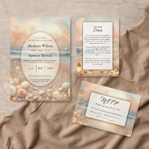 Seaside Sparkle and Sunset Dreams Wedding Invitation