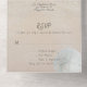 Fiftieth, or any year, anniversary ceremony invitation with detachable reply card. This all-in-one invitation design has a seashore, beach and surf, background, with a big white sand dollar at the bottom. A modern hand-printed font is used with three places for addressing the card on the outside. Include a mail-to, return address, and address to return the RSVP. If an outer envelope is being used, remove all unneeded address text. A stamp can be added to the reply card so guests can simply fill in names and response info and drop it into the mail. The menu reply can be changed to a simple “will attend” and “will not attend”. Although the sample text is for a wedding anniversary, the main invitation text template is in paragraph form and can be easily changed for a wedding or other coastal themed event. The outside graphic is sea blue.