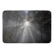 A photograph captures a breathtaking scene of a dense forest bathed in ethereal light. The sun, hidden behind a veil of fog, casts radiant beams through the trees, illuminating the misty air. The branches of the trees, silhouetted against the bright light, create a sense of depth and mystery. The overall mood is serene and tranquil, evoking a sense of peace and wonder.