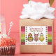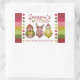 Add a cheerful touch to your holiday packaging with this whimsical design featuring three festive birds dressed in winter costumes—a reindeer, a Santa, and a cosy red-hooded companion. The colourful border of red, green, and pink polka dots frames the playful “Season’s TWEETINGS!” headline, while the personalised message “Warm Wishes Claire, Carl + Kids” adds heartfelt charm.