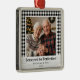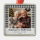 A charming square metal ornament with a black-and-white buffalo check border, whitewashed wood caption bar, and centred photo frame. The headline reads “Seasoned to Perfection,” with space below for names and year. The cosy farmhouse look flatters holiday portraits and makes a heartfelt keepsake for Grandma & Grandpa—or any milestone couple. Update the names/year and add your favourite photo to create a timeless piece for the tree or a gift box.